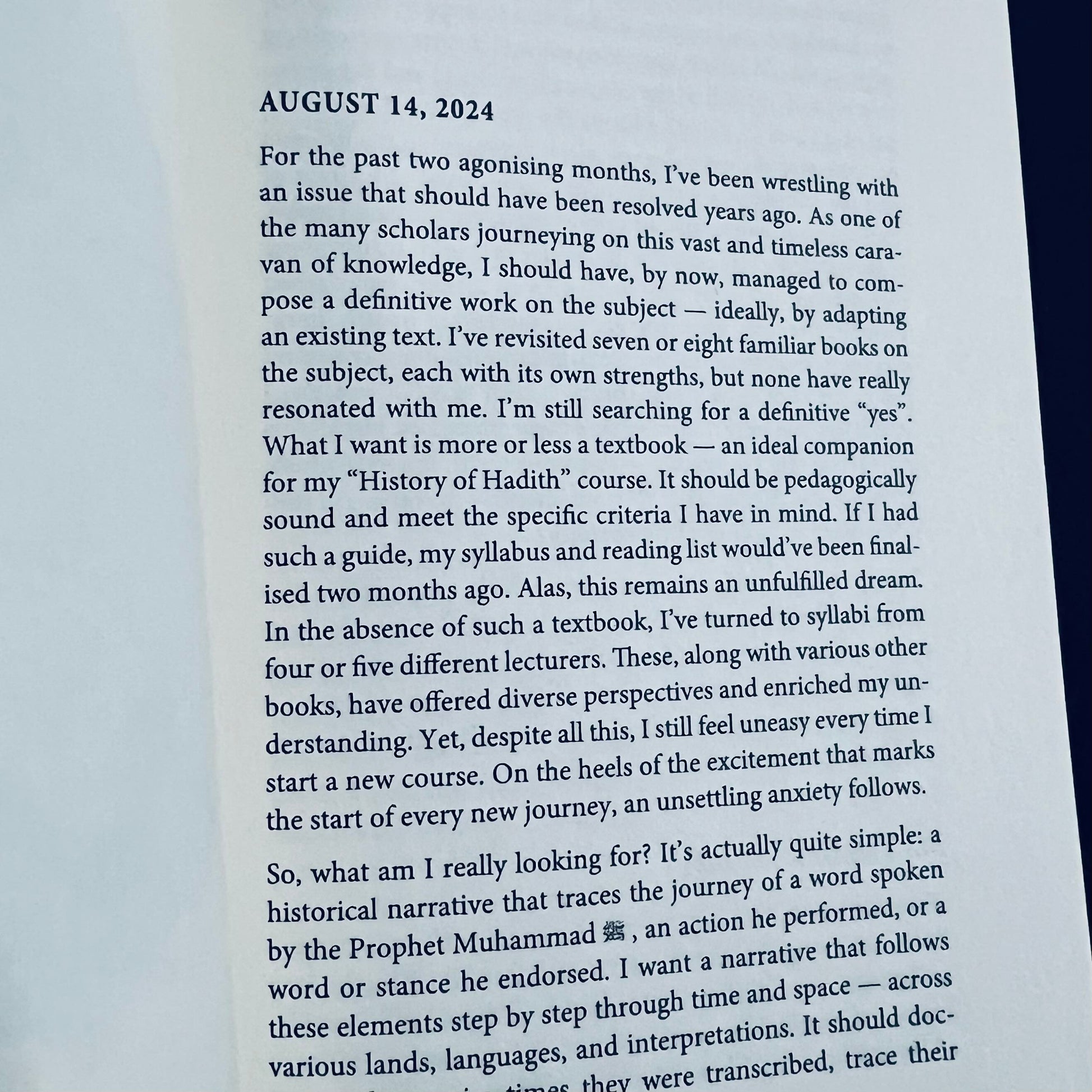 “My teacher received it from his teacher, and he from his predecessor; thus, the prophetic knowledge was narrated through an unbroken chain of trust and devotion.” This is the journey of a seeker of knowledge -the muhaddith- and the story of his quest for the Prophet’s legacy. From Samarkand to Bukhara, Basra to the Haramayn, his path is marked by both ease and hardship, his only companion a journal-a risala that chronicles his pilgrimage. Life fades, but the written word endures. In Gathering Words, the author blends fiction and reality, shifting perspectives between an omniscient observer and the intimate reflections of a young scholar in the second century Hijri. We enter the world of hadith circles. scholarly methods, and revered teachers. Each step draws us closer to the living tradition of the Prophet. Part novel, part academic exploration, this work. captures the spirit of medieval Islamic scholarship, inviting readers to experience the enduring legacy of the Prophet and the unending pursuit of truth.